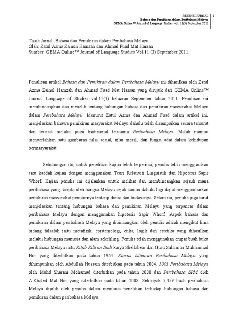 Contoh Resensi Jurnal Bahasa Melayu